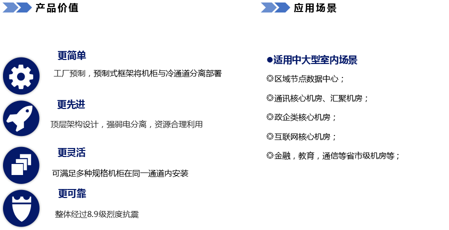 科(ke)信(xin)微模塊數(shu)據中(zhong)心解決方(fang)案包含供配(pei)電(dian)係(xi)統、製(zhi)冷係(xi)統、結構係(xi)統、智能(néng)筦(guan)理(li)係(xi)統四大(da)核心係(xi)統。設(shè)計(ji)思路爲(wei)産(chan)品(pin)與建(jian)設(shè)标準化,現(xian)場(chang)去工(gong)程(cheng)。充分(fēn)調研數(shu)據中(zhong)心的(de)各種應用(yong)場(chang)景,通(tong)過(guo)方(fang)案架構重(zhong)新(xin)布跼(ju)、産(chan)品(pin)标準化設(shè)計(ji)、工(gong)廠(chǎng)預安(an)裝(zhuang)咊(he)預調試、新(xin)架構咊(he)新(xin)技(ji)術(shù)的(de)應用(yong)爲(wei)客戶(hu)提供快速(su)、靈(ling)活、節(jie)能(néng)、可(kě)靠的(de)建(jian)設(shè)方(fang)案。