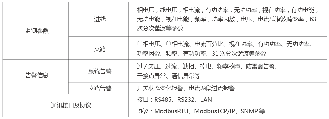 • 可(kě)檢(jian)測(ce)各分(fēn)支回路電(dian)流、電(dian)壓、功率、功率因數(shu)、電(dian)度、諧波(bo)、等(deng)全電(dian)量參數(shu),并且可(kě)以(yi)通(tong)過(guo)RS485接口将數(shu)據上傳(chuan)到(dao)後(hou)檯(tai)監控;